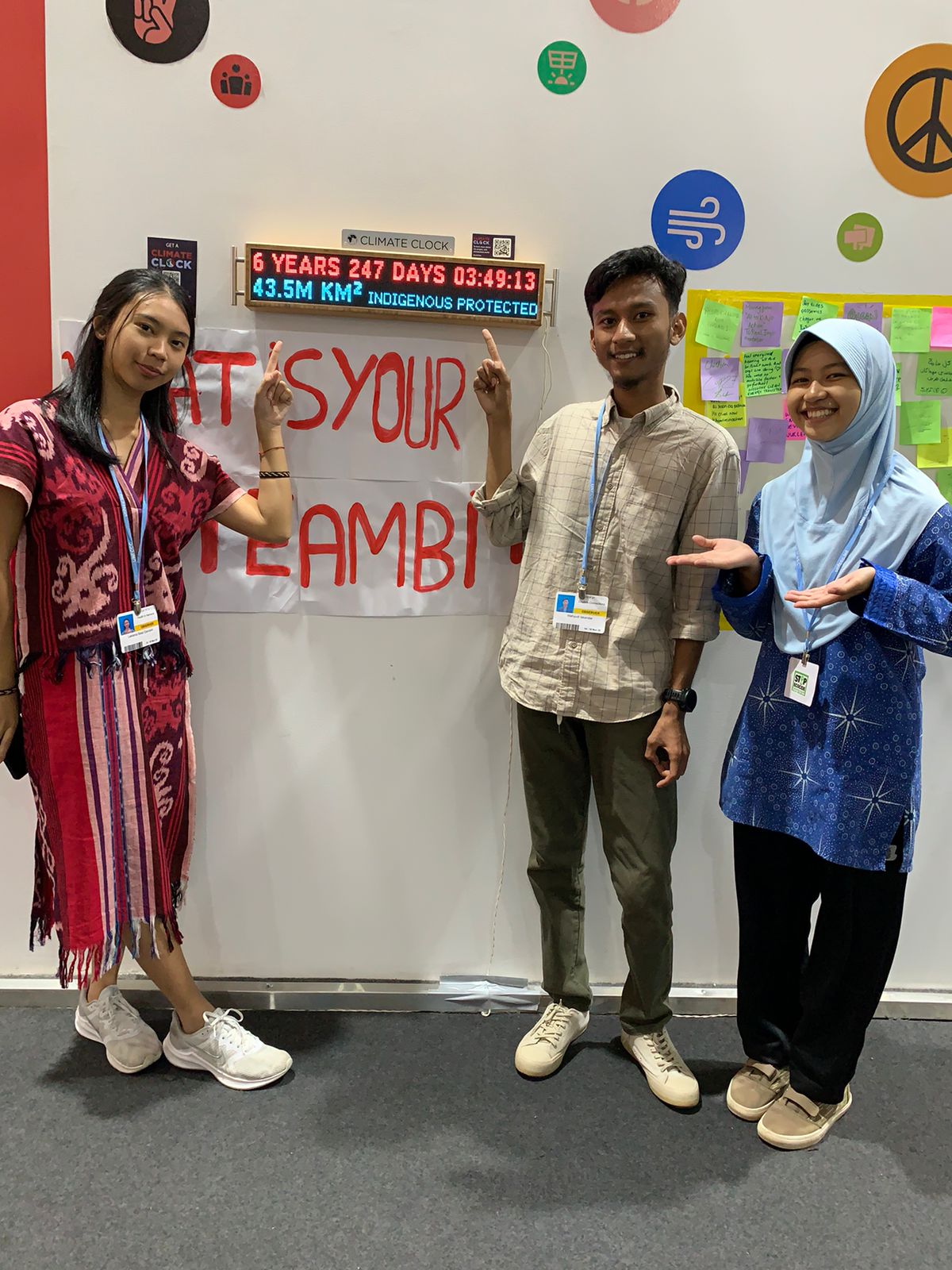Climate Clock at Youth Pavillion with Belai (Harmony in Nature), Yudi (XR Indonesia, Nala (Fridays For Future Indonesia) in frame